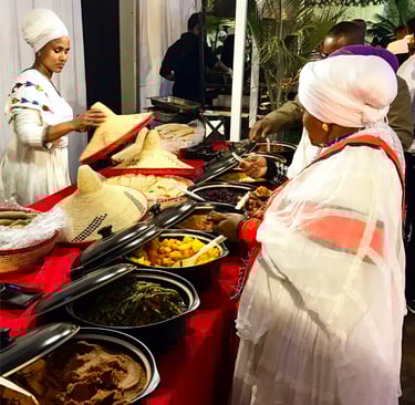 Spicy chicken stew simmered with berbere and hard-boiled eggs.